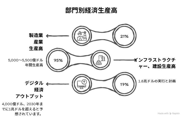 日本の投資家の観点から見ると、インドは安定した経済と力強い成長を両立させている点で魅力的です。インドの成長は、特定のセクターや特定の地域によって牽引されているわけではありません。国内消費、インフラ整備、産業活動、そしてサービス輸出によって支えられています。