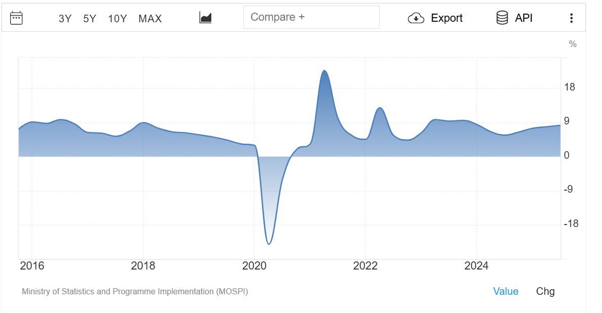 インドのGDP成長チャート(過去10年)